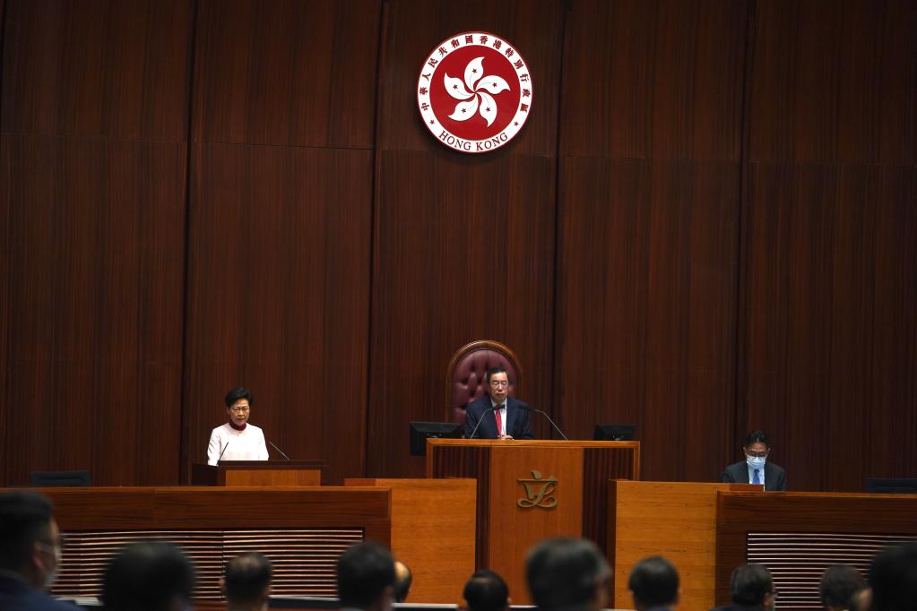 香港特區行政長官林鄭月娥6日上午11時在特區立法會發表她任期內的第五份施政報告。新華社記者 呂小煒 攝