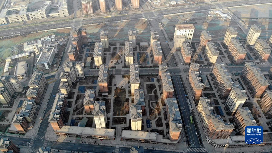 這是2022年1月6日拍攝的河北雄安新區容東片區安置房項目(無人機照片)。新華社記者 駱學峰 攝
