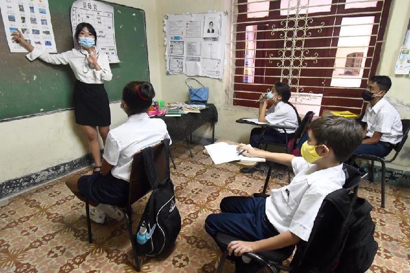 26歲的侯嘉琪是中方選派到古巴中學任教的首位中文老師。她接受新華社記者采訪時說,古巴學生學習中文熱情很高,目前學校每天上午有兩節中文課,每節課時長約60分鐘。截至本月11日,學生已經學完漢語拼音的韻母。