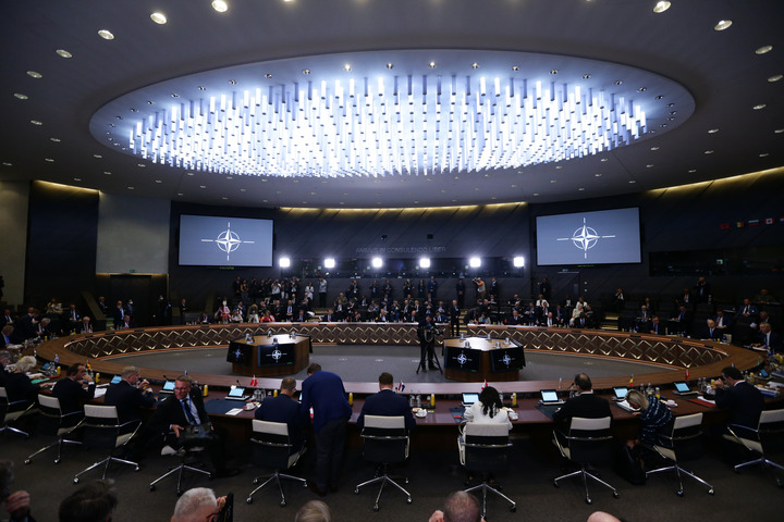 6月16日,與會人員在比利時布魯塞爾的北約總部出席北約成員國國防部長會議。新華社記者鄭煥松攝