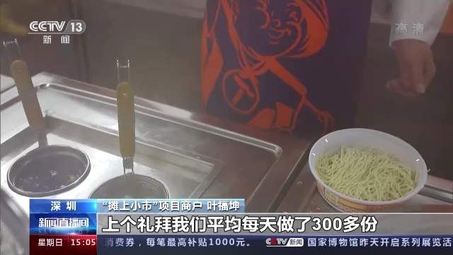 “攤上小市”項(xiàng)目商戶 葉福坤:房租不用我們出,沒有壓力,什么材料都是平臺(tái)提供,我們負(fù)責(zé)出餐就行了,上個(gè)禮拜我們平均每天做了300多份,有時(shí)候我們兩個(gè)人忙不過來,他們公司還會(huì)派人過來幫忙。