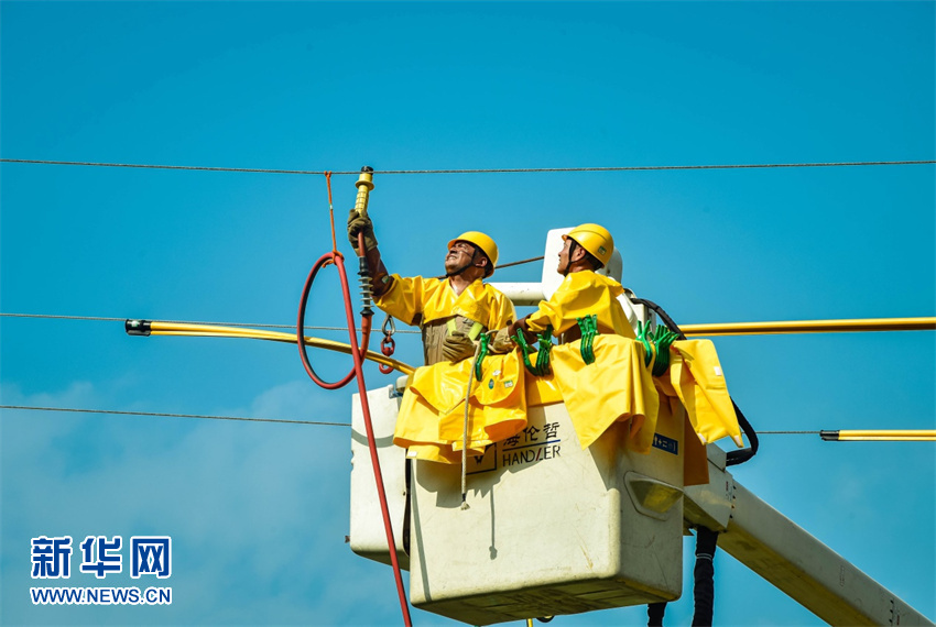 在杭州市臨平區塘棲鎮姚家灣,電力工人頂著烈日熱浪在電線桿上作業。他們是國網杭州市臨平區供電公司的員工。為應對此階段的用電高峰,該公司多措并舉,積極推動需求側負荷控制管理,開展迎峰度夏多場景演練,實行“能帶電就不停電”的施工作業方式,利用無人機、紅外測溫儀等設備排查線路隱患。