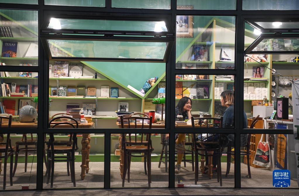 7月21日,顧客在貴州省貴陽市南明區(qū)青云路“青云市集”的小書屋里交流。