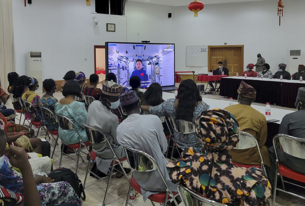 ↑這是9月6日在尼日利亞阿布賈拍攝的“天宮對(duì)話”活動(dòng)尼日利亞分會(huì)場(chǎng)。新華社記者 郭駿 攝