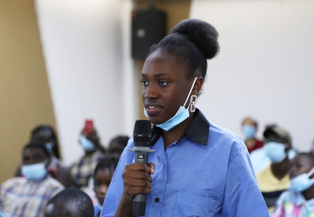 ↑9月6日,在塞內(nèi)加爾達(dá)喀爾的“天宮對(duì)話”活動(dòng)塞內(nèi)加爾分會(huì)場(chǎng),一名學(xué)生向中國(guó)航天員提問(wèn)。新華社記者 王子正 攝