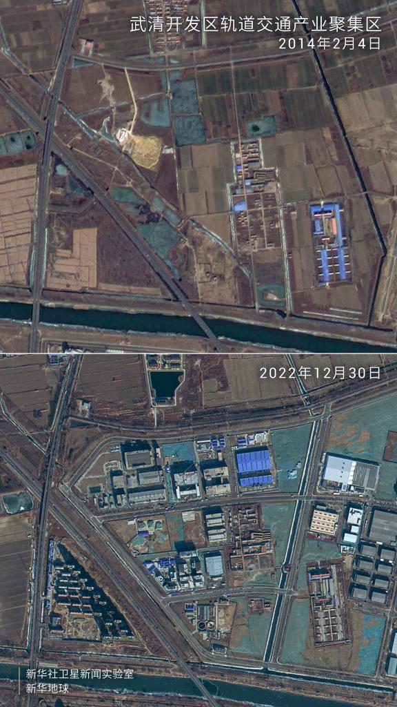 衛星拍攝的武清開發區軌道交通產業聚集區對比圖