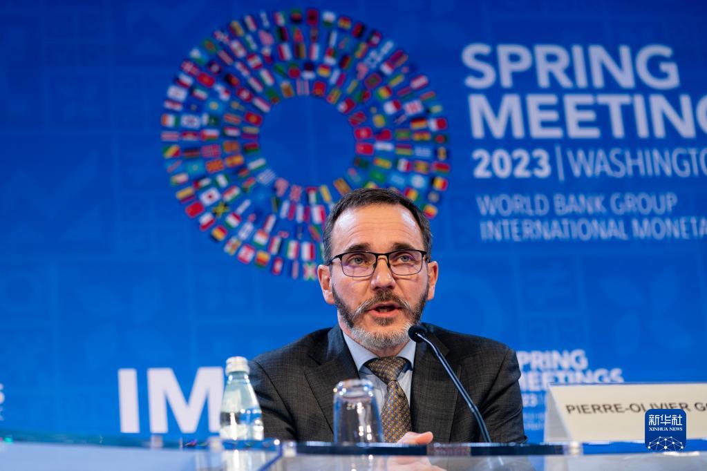 4月11日,在美國華盛頓,國際貨幣基金組織(IMF)經濟顧問兼研究部主任皮埃爾-奧利維耶·古蘭沙出席新聞發布會。新華社記者 劉杰 攝