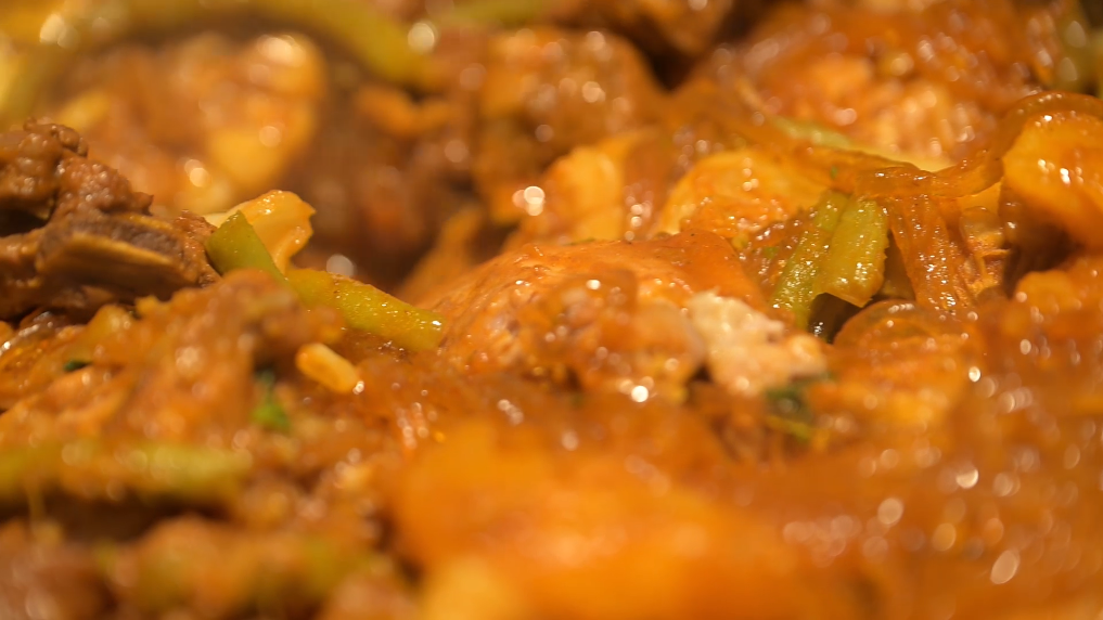半米的大鐵鍋,似乎能裝下整個世界——雞翅、土豆、排骨、牛腩、玉米等等等等,各種食材一股腦兒地倒進去,萬物皆可鐵鍋燉。