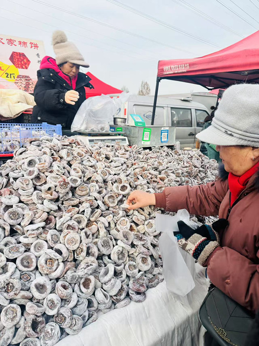 “以前姥爷经常蹬着三轮车带我到集上买柿饼,大了再来到集市,瞬间勾起了童年的记忆。”任先生说。