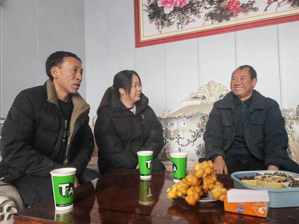 春节期间,白文英(左二)与赵永和(左一)在赵怀明(右一)家走访。新华社记者 崔翰超 摄