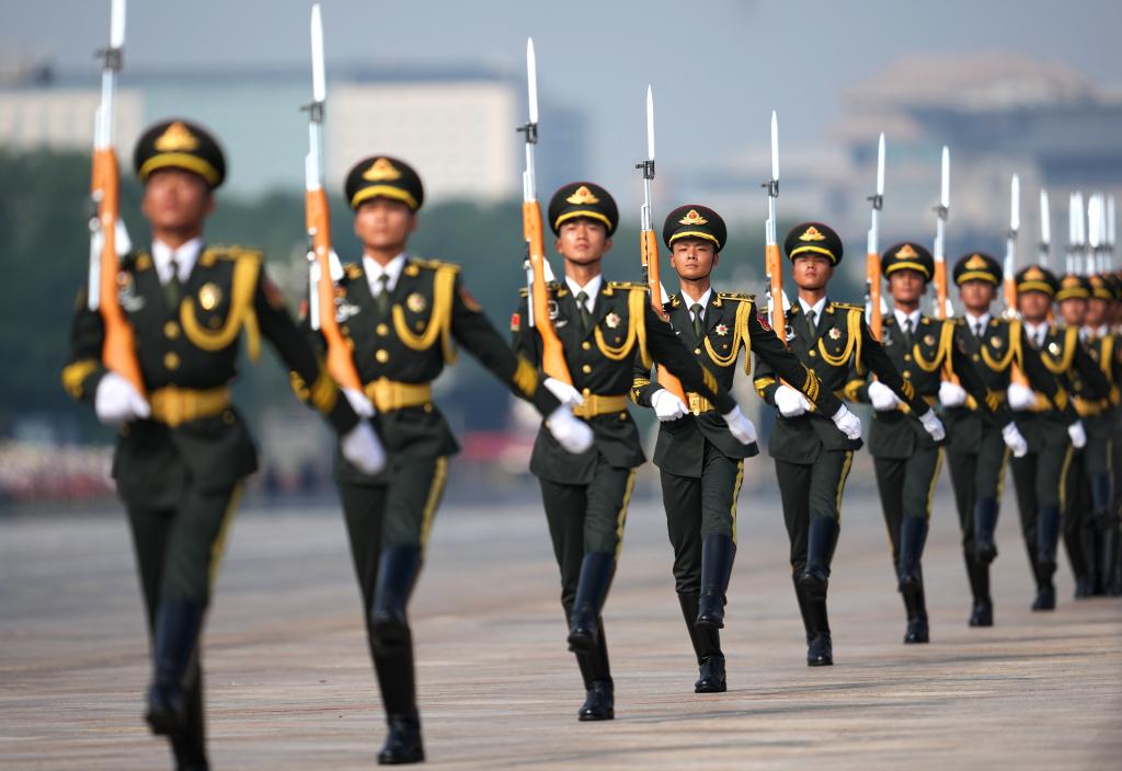 9月3日,纪念中国人民抗日战争暨世界反法西斯战争胜利80周年大会在北京隆重举行。这是中国人民解放军仪仗方队接受检阅。新华社记者 刘卫兵 摄