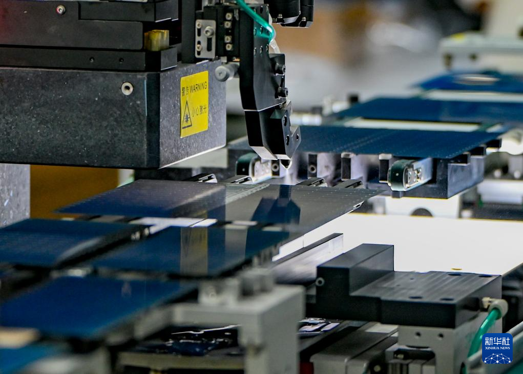 9月22日,在新疆巴音郭楞蒙古自治州若羌县的国晟企诚新能源有限公司,全自动划片机在切割光伏电池片。