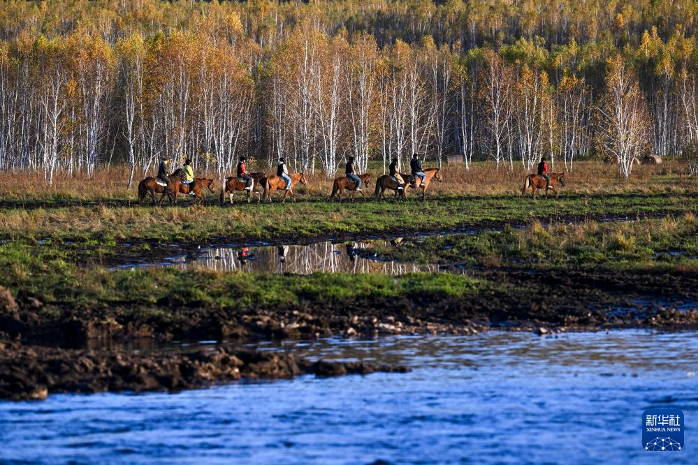 9月17日,在内蒙古呼伦贝尔市额尔古纳市恩和俄罗斯族民族乡恩和村,游客体验骑马。
