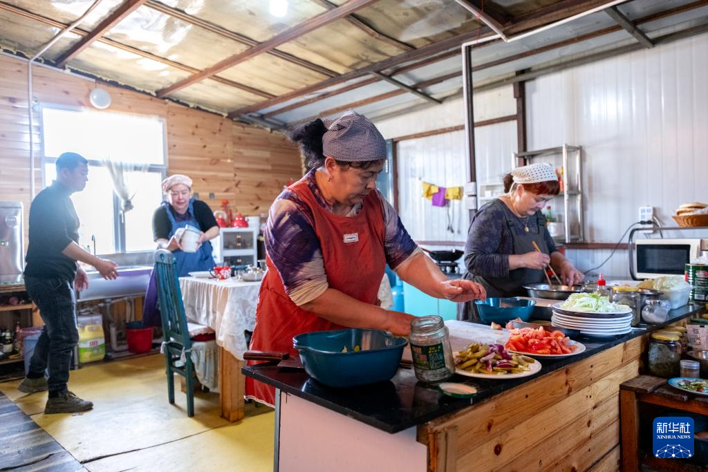 9月26日,在内蒙古呼伦贝尔市额尔古纳市恩和俄罗斯族民族乡恩和村,俄罗斯族厨师在饭馆后厨制作传统美食。