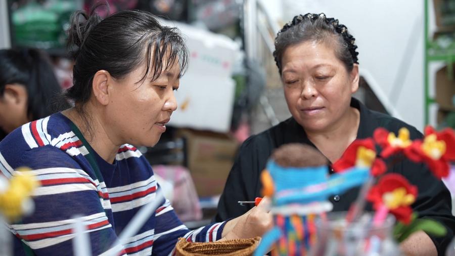 就在张美仁一筹莫展之时,她所在的内蒙古达拉特旗西园街道金鹏社区工作人员找到她,介绍她参加了社区对接的手工编织培训班,让她能在照顾家庭的同时,获得一份收入。