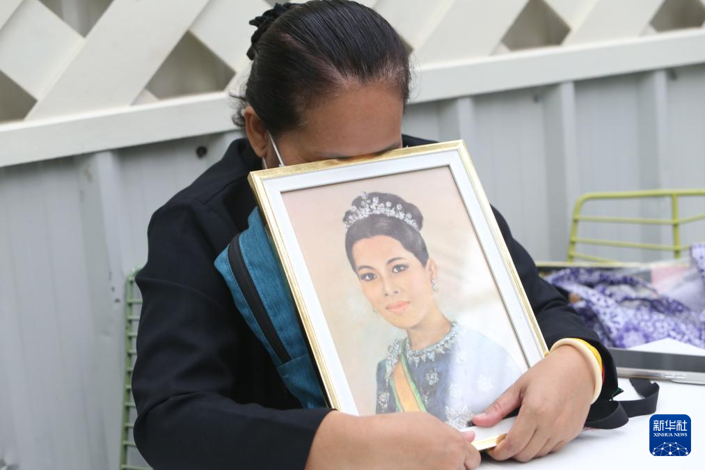 10月25日,人们在泰国曼谷朱拉隆功国王纪念医院悼念诗丽吉王太后。