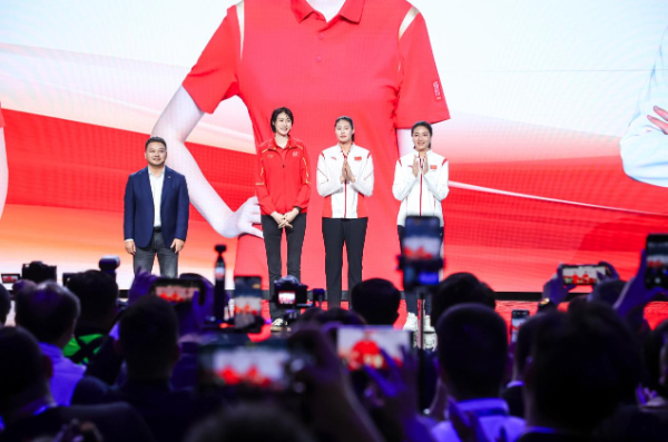 女排世界冠军赵蕊蕊、魏秋月、颜妮亮相发布会现场