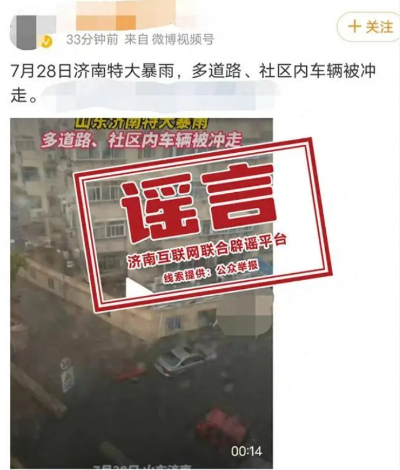 济南互联网联合辟谣平台特别提醒,近期多地出现强降雨天气,个别网民为博取关注,炒作旧闻。网民朋友要做好分辨识别,做到不信谣、不造谣、不传谣。