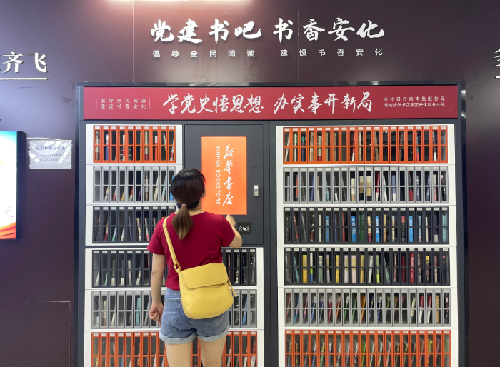 “党建书吧”位于市民之家政务服务大厅A栋2层,面积约30平方米,上架书籍涵盖哲学、历史、文学、幼儿、艺术等多个类别、共计1031册。以倡导全民阅读、建设书香安化为宗旨,采用智慧书柜与传统书柜相结合,通过完善制度、开展活动等方式,确保该“书吧”管理有序、促进学习。
