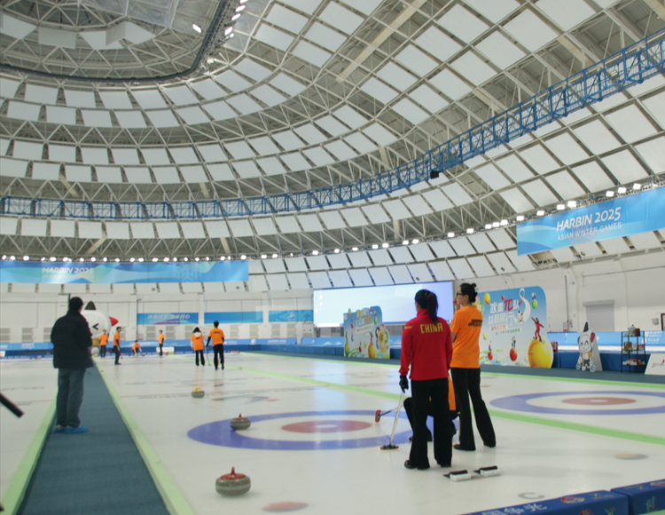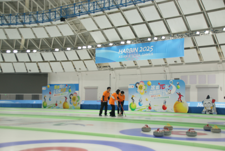 训练后的模拟赛将活动推向高潮。哈工大学子两队以壶会友,精准投掷、默契配合、逆风翻盘……冰壶与冰面碰撞的清脆声响,交织着欢呼与掌声。而作为此次活动的主办方,龙江体彩鼎力支持,为青年们的冰雪梦想“破冰护航”。