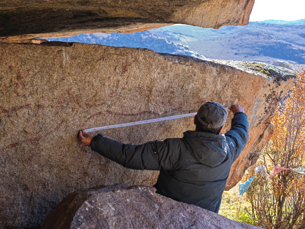 10月21日,记者跟随四川省甘孜州稻城县文广旅局皮洛遗址文物保护中心负责人陈雪松,前往平均海拔4000米以上的海子山区域,探寻距今约8000年的旧石器时代“海子山—格聂岩画群”。