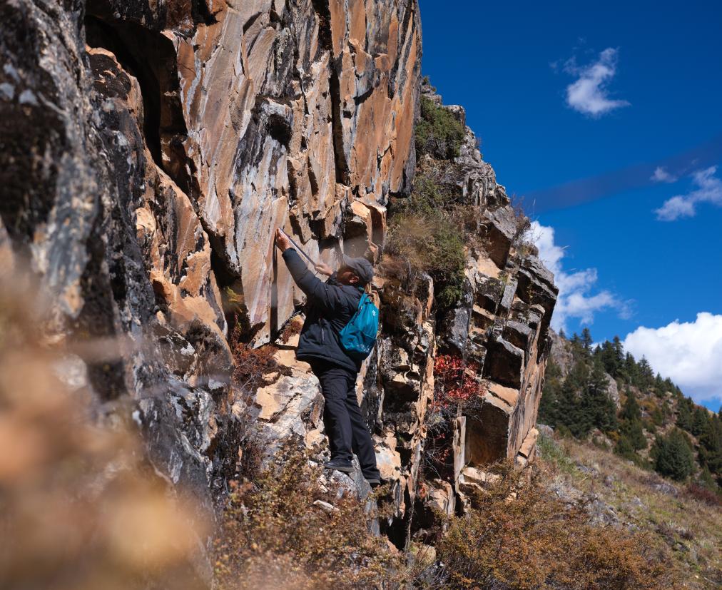 10月21日,陈雪松实地调查海子山老林沟拉托扎岩画。