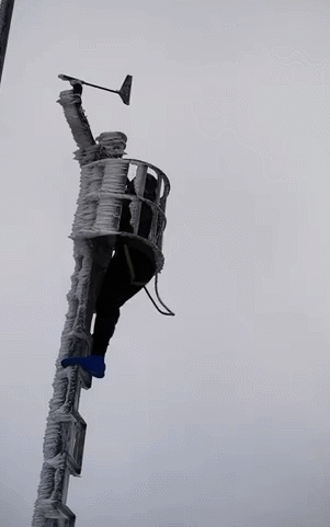 你知道爬上结满冰霜的梯子是什么体验吗,他们知道。在海拔1840米黄山之巅的光明顶气象站,为保证设备正常运转,他们顶着8级大风爬上结满冰霜的梯子,将风速传感器拆下维护。风霜如刀,雕刻出更坚韧精准的气象事业。