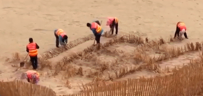 茫茫荒漠,漫漫黄沙,这群筑路人正如坚韧的梭梭和胡杨,与恶劣的自然条件角力,为沙漠带来生机与希望。