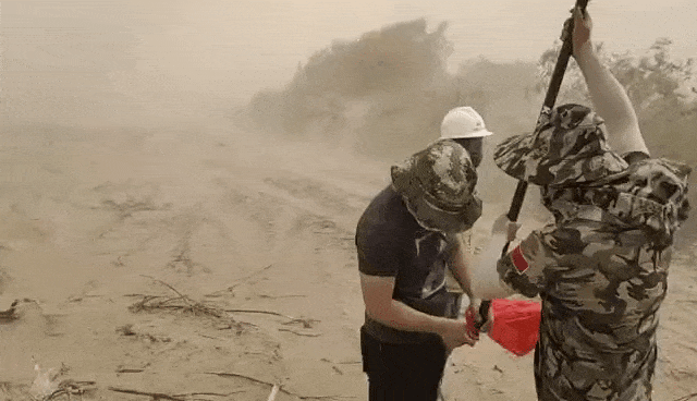 视频中,沙尘暴突然来袭,施工人员卧倒并通过安全绳固定自己,趴在桥面上屏住呼吸、双目紧闭,持续了一个多小时。