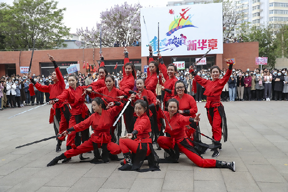 4月25日中午,新華社舉辦“乘風破浪新華章”——第十六屆新華女性陽光健身活動。新華網員工表演的劍舞《出征》受到社內領導和觀眾一致好評。
