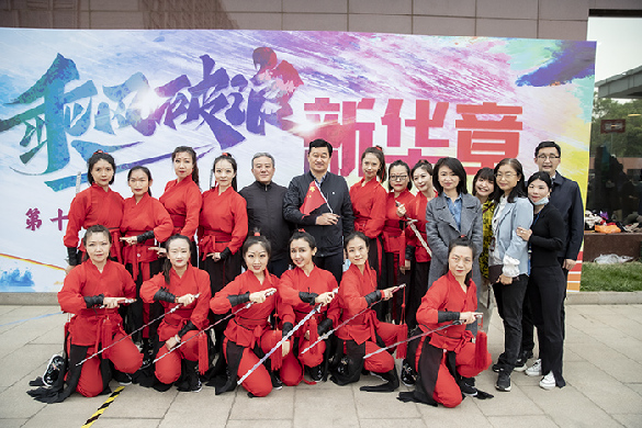 圖為新華網員工現場表演劍舞《出征》陳杰?攝