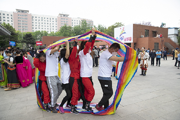 圖為新華網員工參加團體趣味健身運動?陳杰?攝