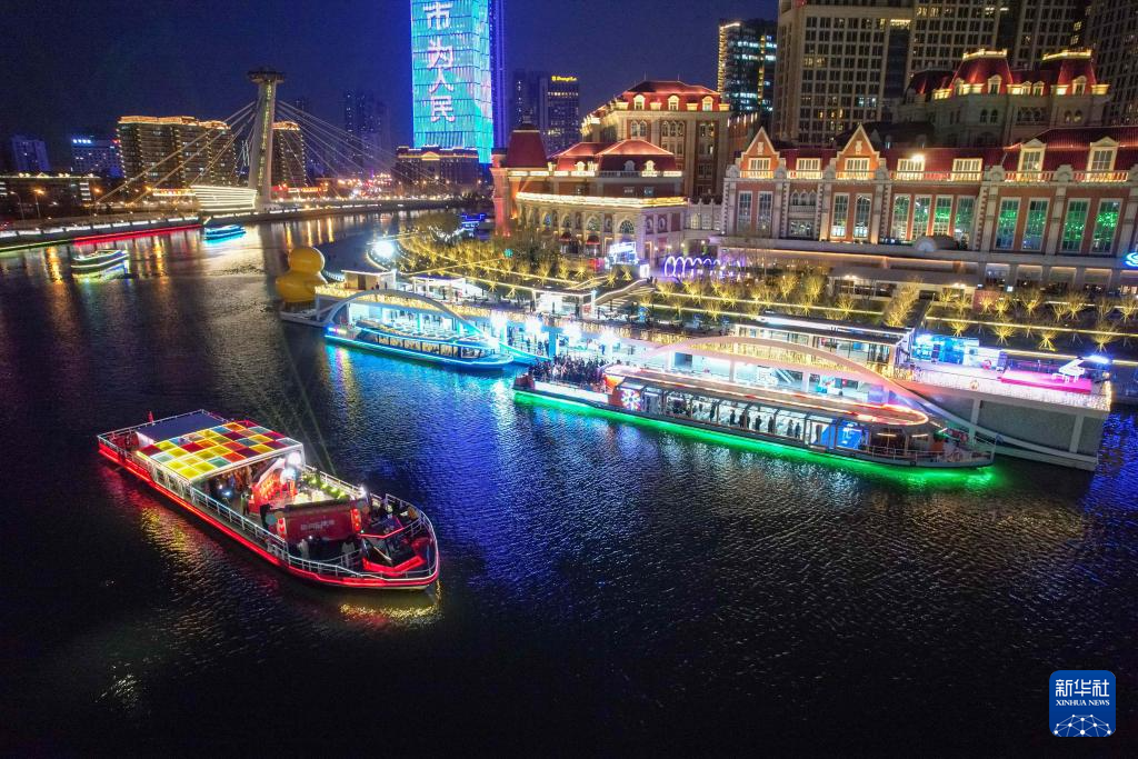 当晚,“运河向津来”——第七届天津海河文化旅游节启幕。本届海河文化旅游节以海河观光带为主轴,以运河文化、桥梁文化、津韵文化为核心,将游览参观与步入式赏景、沉浸式体验、文创演艺等相结合,将持续至4月30日。