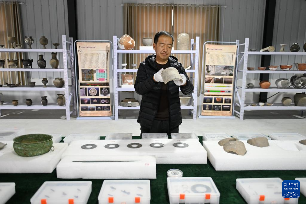 3月26日,雄安新区文物保护与考古工作站负责人雷建红在整理南阳遗址出土文物。新华社记者 牟宇 摄