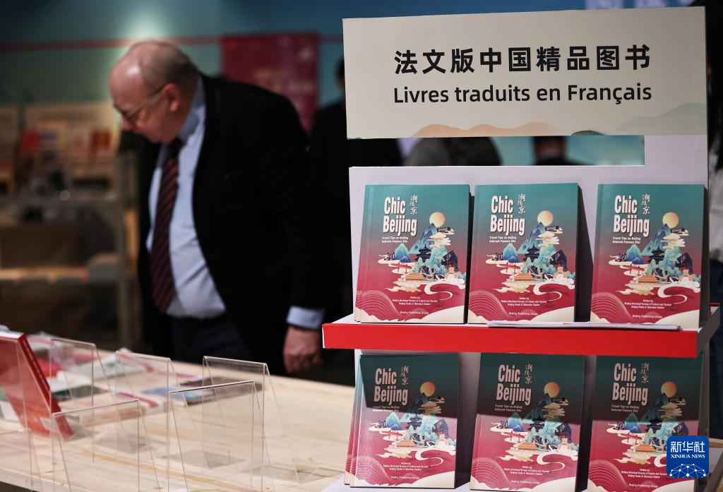 这是4月12日在法国巴黎临时大皇宫举行的2024巴黎书展上拍摄的中国图书。