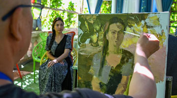 7月15日,观众在新疆库车市龟兹魏晋古墓遗址博物馆参观。
