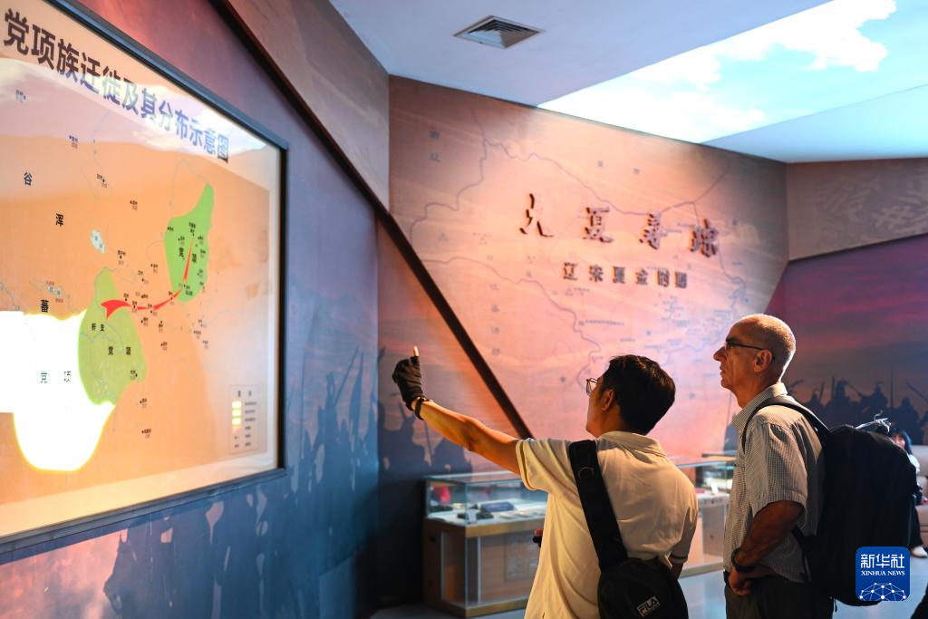 9月1日,游客在宁夏博物馆了解西夏历史。
