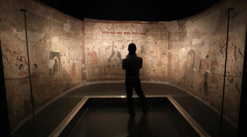 麦积山石窟艺术研究所数字中心主任董广强在查看麦积山石窟的壁画雕塑(11月2日摄)。