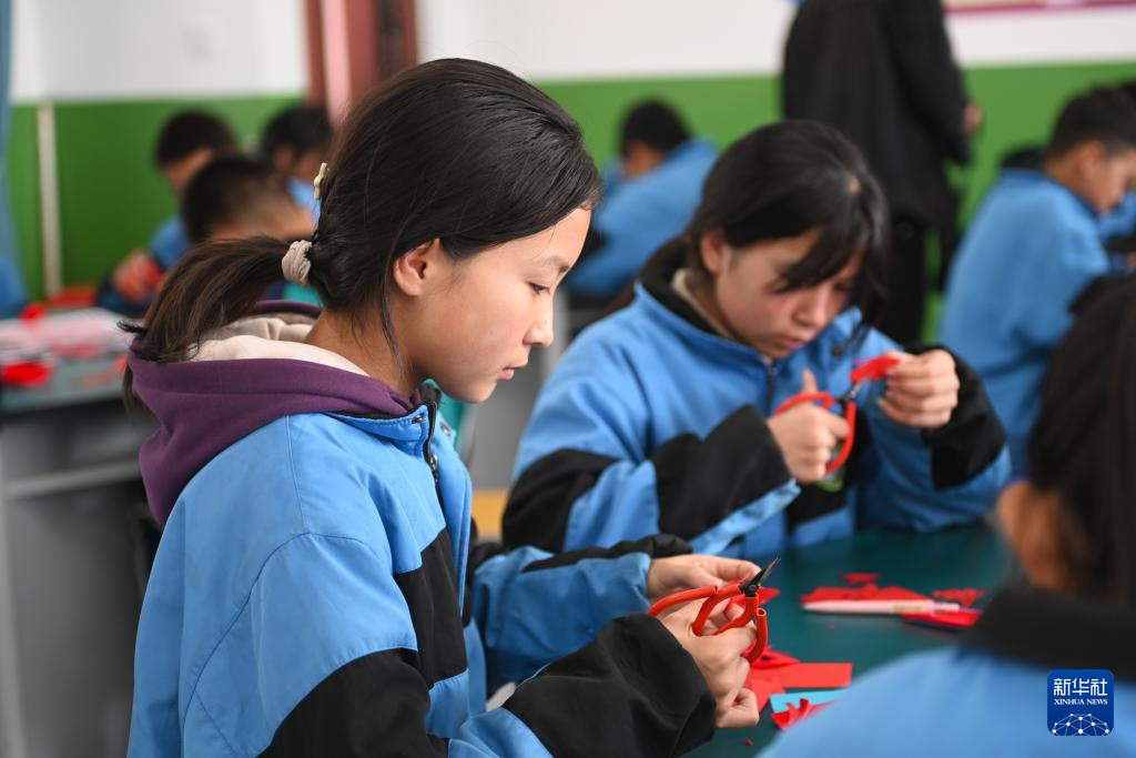 近年来,宁夏固原市隆德县在部分中小学开展非遗剪纸文化课,安排非遗传承人等为学生授课,培养学生的实践动手能力,让学生近距离体验剪纸艺术的魅力。