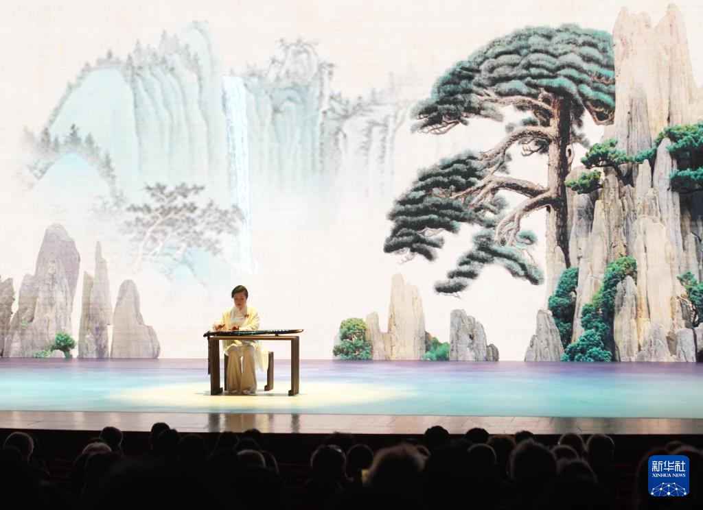 11月6日,演职人员在表演经典古琴曲目《流水》。