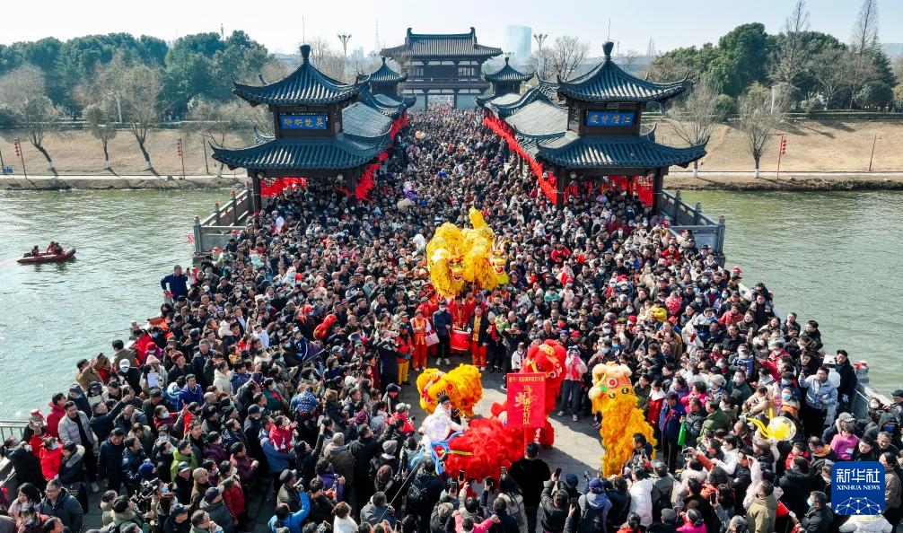 当日是农历正月十六,安徽省滁州市全椒县传统民俗活动“走太平”拉开帷幕。巡游队伍穿过太平桥,献上精彩纷呈的民俗表演。
