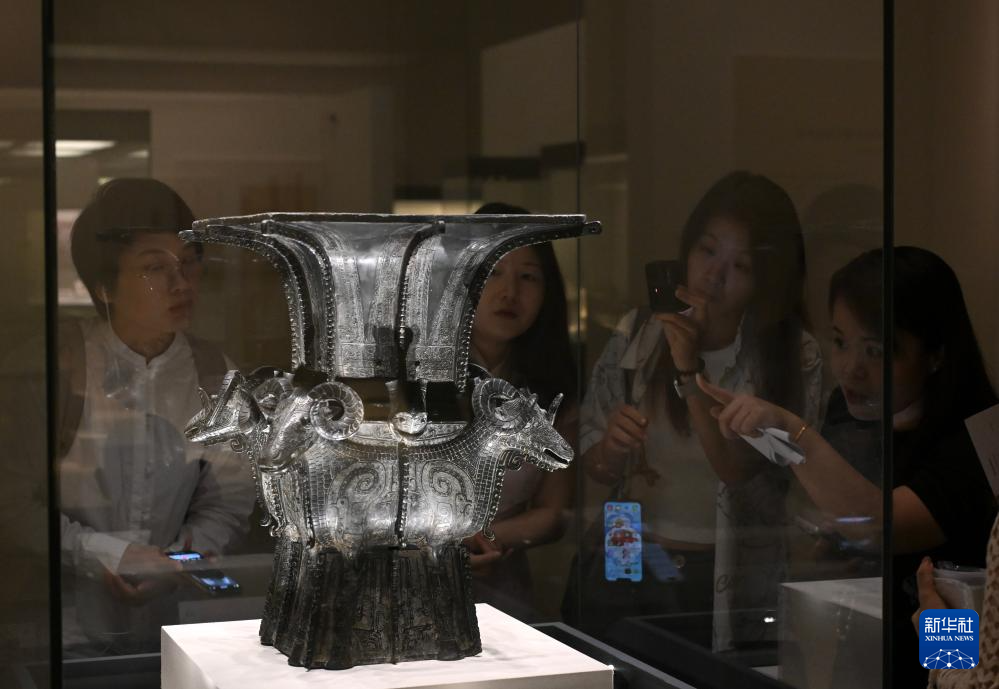 7月21日,人们在国博参观仰韶文化鹰形陶鼎。
