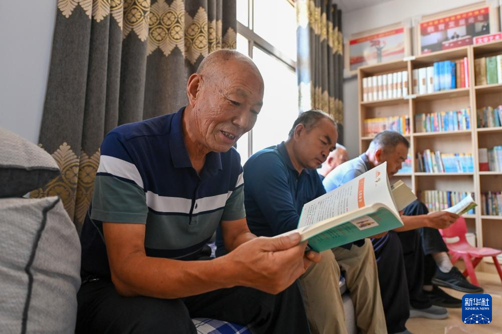 村民在位于山西省永济市卿头镇张坊村的家庭图书馆内看书(9月9日摄)。