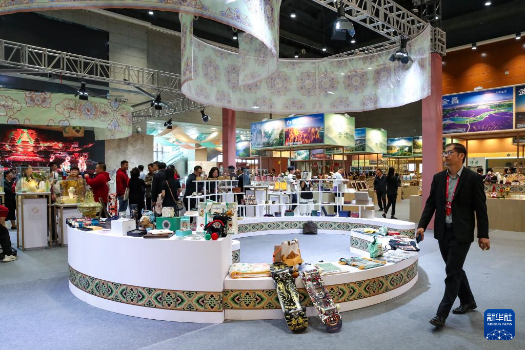 9月21日,与会嘉宾在第八届丝绸之路(敦煌)国际文化博览会上选购非遗文创产品。