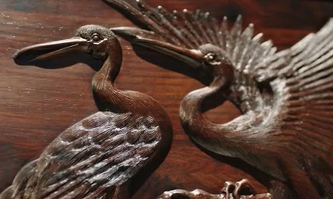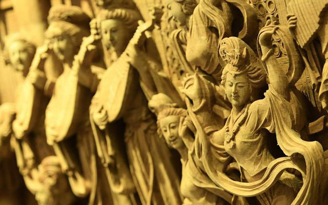 东阳木雕因发源于浙江东阳而得名,由唐至今已有千余年历史,是中国民间雕刻艺术的优秀代表。东阳木雕以平面浮雕为主,散点透视构图,层次丰富,色泽清淡,具有自己鲜明的特色。