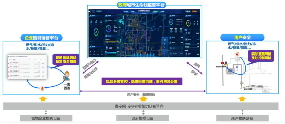 与此同时,开封新奥燃气作为当地主要的管道燃气企业,基于聚安网-安全专业能力认知平台的能力,接入开封市城市生命线安全监管平台,实现了政府、企业、用户三端联动协同,做到了燃气风险早预警、燃气隐患早整治,较好地扛牢了企业的安全主体责任,为政府安全监管提供了有力抓手。