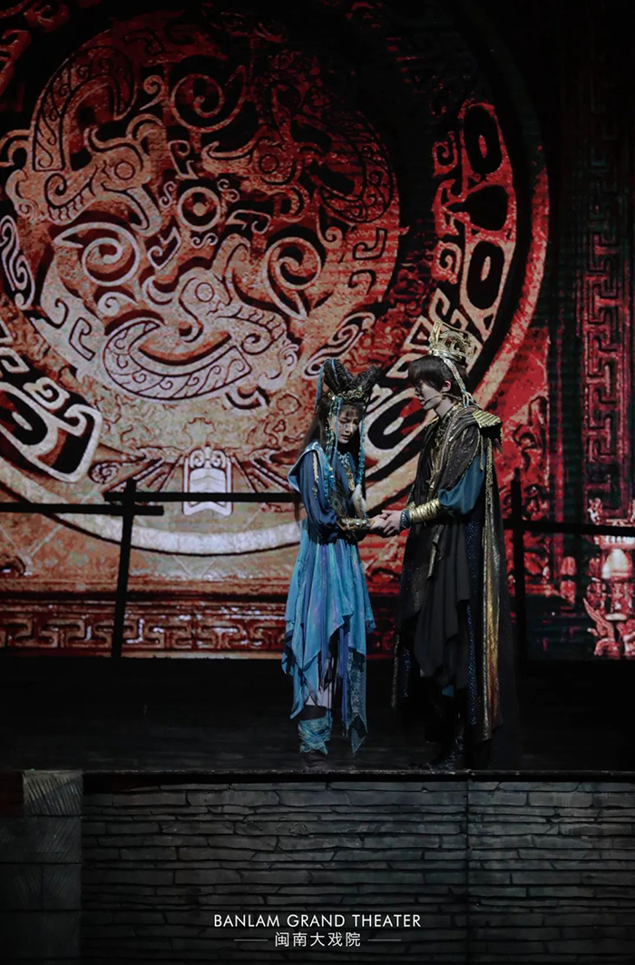音乐剧《三星堆》通过人声、陶埙、古笛、萧等传统乐器,匠心设计出一种“千年前”的声音,营造出古蜀神秘奇幻浪漫意境,带领听众穿越时空,进入三星堆的瑰丽世界。