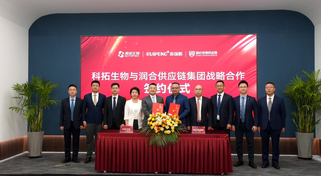李万邦表示,“润合供应链集团作为新瑞鹏集团的成员,一直秉承着企业精神,致力于成为全球最专业的宠物全产业链综合服务商。我们深知,宠物健康不仅关乎每一个宠物家庭的幸福,也是我们行业发展的重要基石。科拓生物在益生菌领域的专业优势,结合润合供应链集团在市场拓展和物流配送方面的专业能力,将为我们合作项目的产品打开更广阔的市场空间。”
