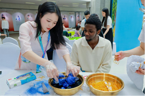 比赛现场主办方也为选手们准备了漆扇、茶艺、剪纸、扎染等丰富多彩的传统文化体验活动。