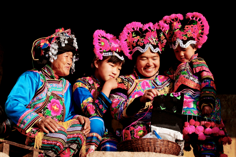彝族儿女身着五彩斑斓的民族服饰